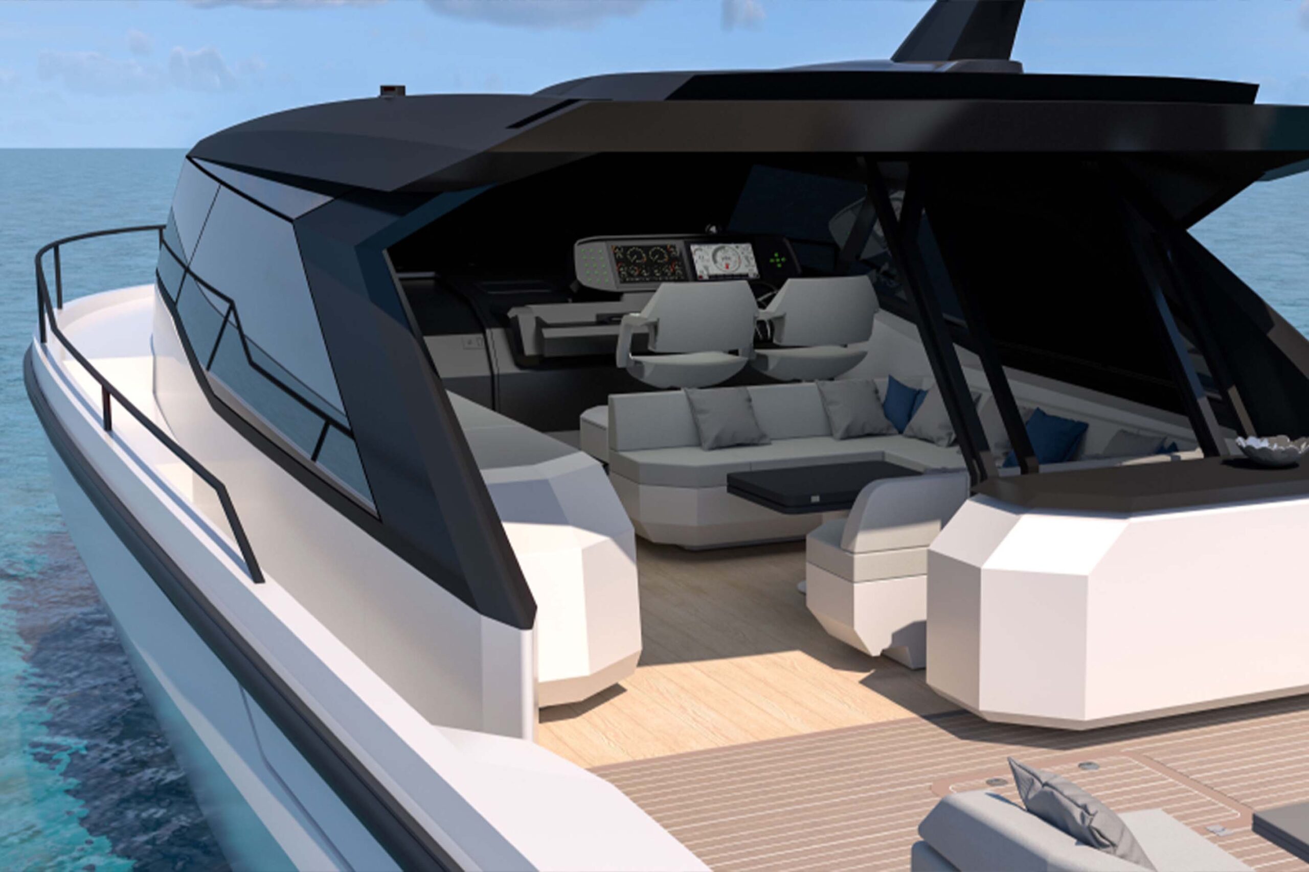 The interior layout confirms a high degree of versatility, featuring two dedicated cabins designed to offer maximum comfort during extended stays. Material research has led to an atmosphere where Italian design meets functional solutions tailored for life on board at any speed. Technical features have been integrated discreetly to preserve formal purity, ensuring that natural light remains a structural element of the stay. It is an exclusive indoor-outdoor experience destined to remain contemporary and authoritative over time.