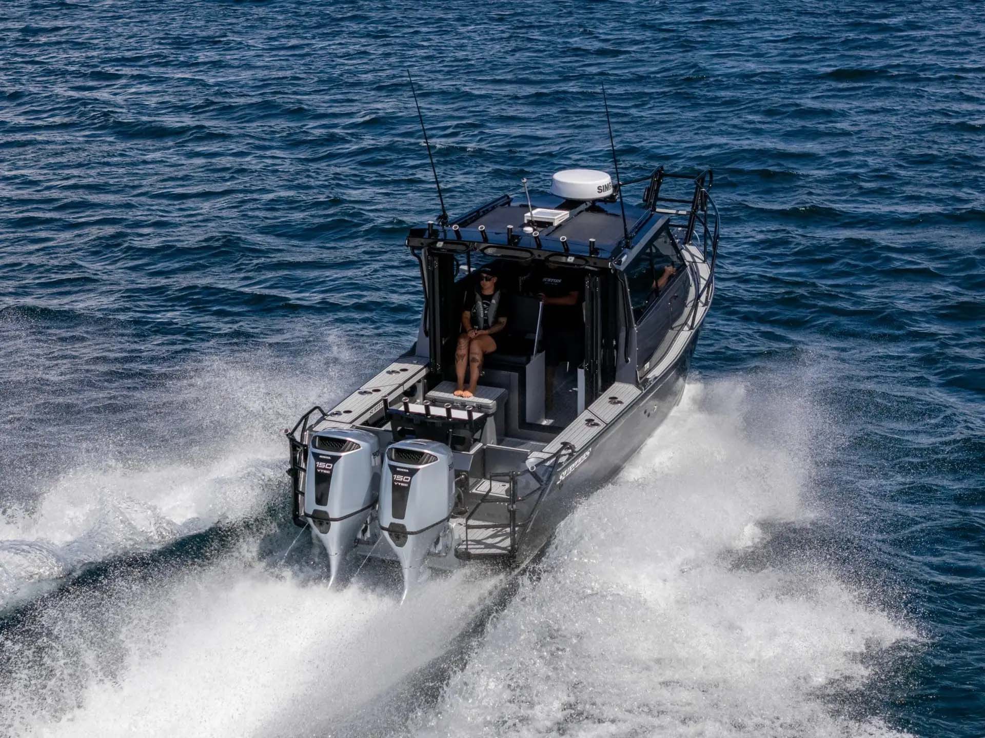 Step inside, and it becomes clear that Surtees isn’t just building a fishing platform—they are building a home for the hunt. The cabin has been extended by 250mm, creating a social hub that accommodates up to four people in total comfort. Featuring bifold glass doors, a double diesel cooker and heater, and a hot and cold water sink, the interior mirrors the amenities of a much larger vessel. Whether you are enduring a cold morning run or staying overnight on a remote reef, this layout serves as a genuine offshore basecamp.