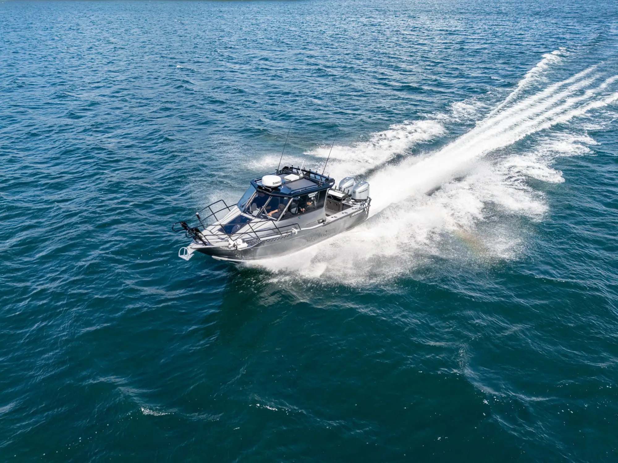 For the captain, the 770 Game Fisher XL offers a command center that prioritizes high-end technology. The helm is built to house a 19” sounder, with dedicated mounting options for radar and a roof console that keeps the VHF and sound system within arm’s reach. Surtees emphasizes that sounders, radars, and engines—recommended between 250HP and 350HP—are all “owner’s choice,” allowing for a bespoke setup tailored to specific offshore missions.