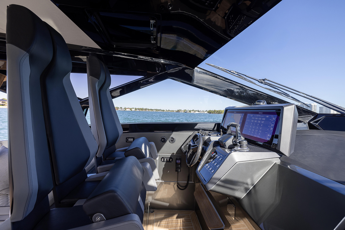 Performance is the primary currency of the 50X. The standard configuration utilizes a twin Mercury Verado V10 425 hp package, achieving a respectable 50 knots. However, the second hull—unveiled specifically for the Miami debut—raises the stakes with a Mercury Racing V8 500 hp setup. This optional powerhouse pushes the 50X to a top speed of 54 knots, offering a cruising speed of 36 knots that allows for rapid transits across the Florida Keys or the Mediterranean.