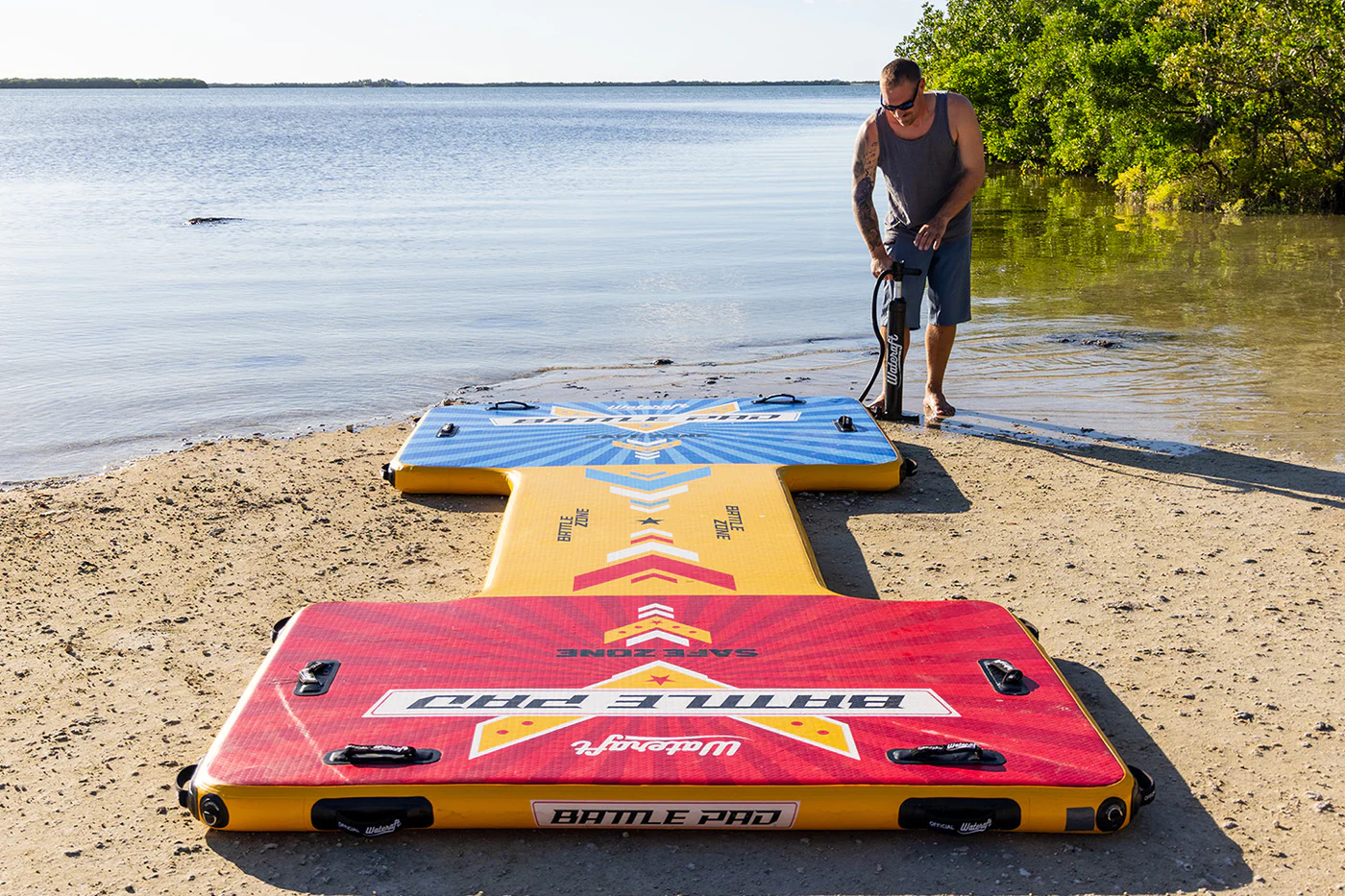 For those seeking a higher pulse on the water, the Wateraft Battle Pad is the primary interceptor. This 13-foot floating arena is built from premium, UV-resistant PVC and comes equipped with built-in metal D-rings for anchoring to any boat or shore. The setup includes inflatable battle sticks designed for friendly chaos, turning a quiet cove into a high-stakes showdown. Despite its size, the system deflates into a compact travel bag, proving that massive entertainment doesn’t require massive storage.